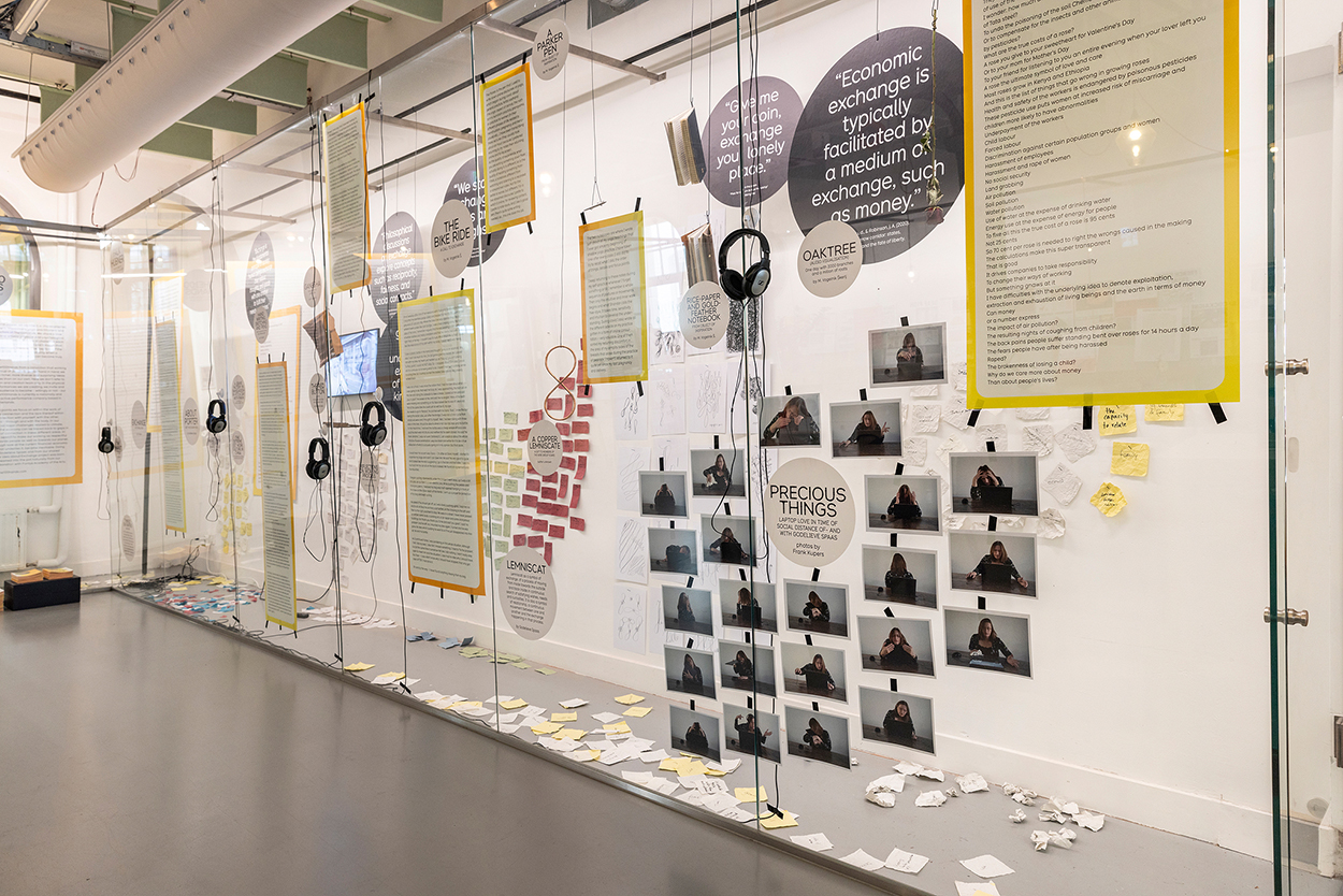 The exposition is set up as a multi-layered cloud of things, a work-in-progress, a peek into the living process. A collection of stories, audio recordings, video elements, visual translations and self-reflection assignments reveal how a cross-domain research of the phenomenon of 'exchange' leads to a range of valuable insight, output and applications.