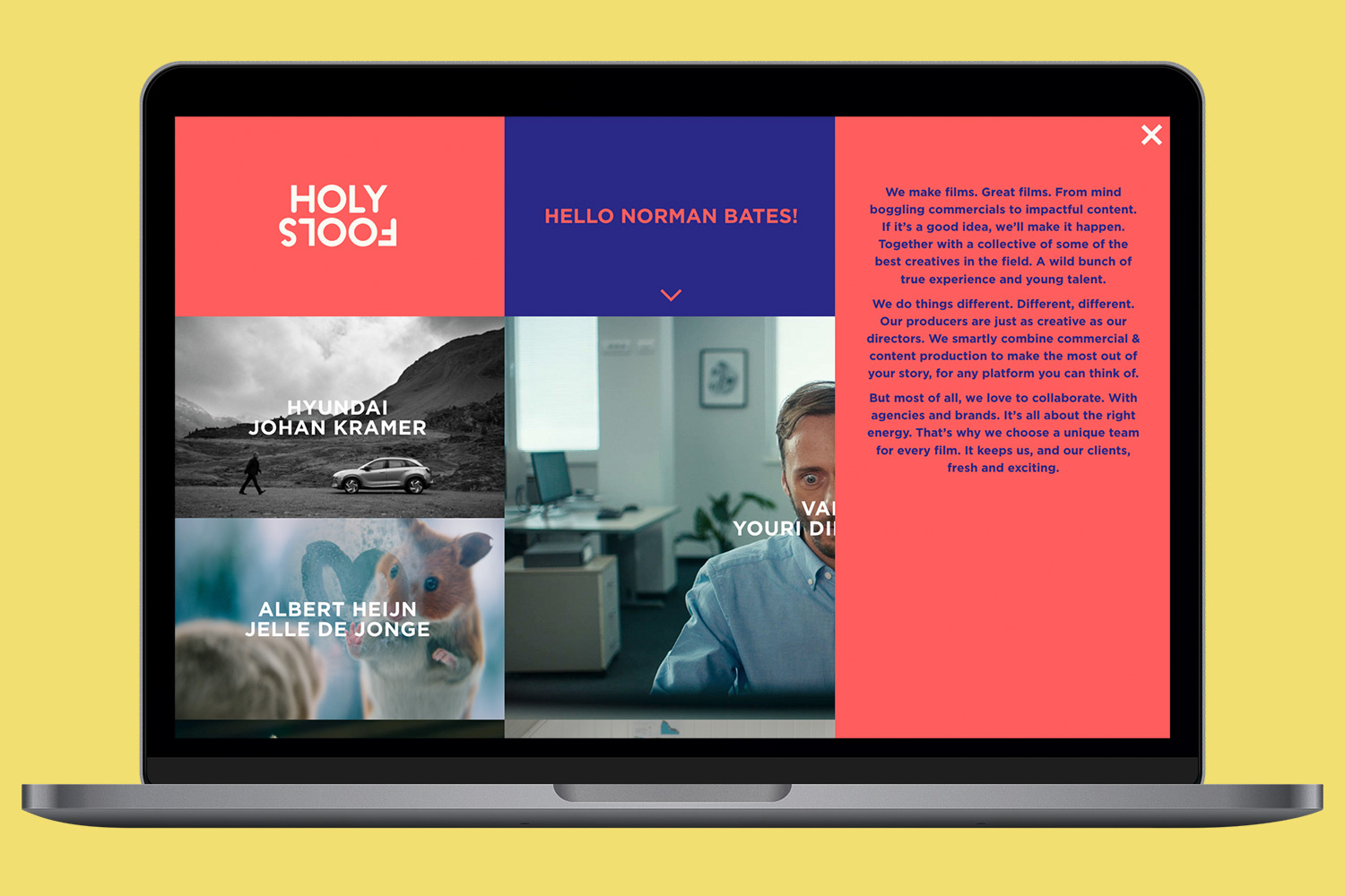 Website design for film and video production company Holy Fools. HF produces commercials & branded content for agencies and brands.